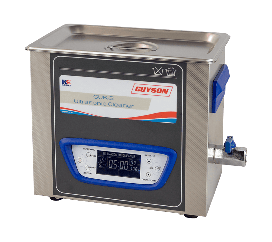 - 超声波清洗,利用高功率空化作用去除灰尘、污垢和油脂等污染物 – GUK超声波清洗槽, KS槽, UCR槽, CRD槽, 可浸没式换能器, Microsolve Mono和co-solvent, microclean